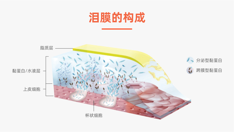 我们眼睛的角膜表面,覆盖了一层泪膜,功能就是?;ぱ劬Φ氖?。泪膜又由三层组成:最里面一层黏蛋白混合层,中间一层是水液层,最表面一层是脂质层。其中任何一层出现问题,都会导致泪膜不稳定,出现干眼症。